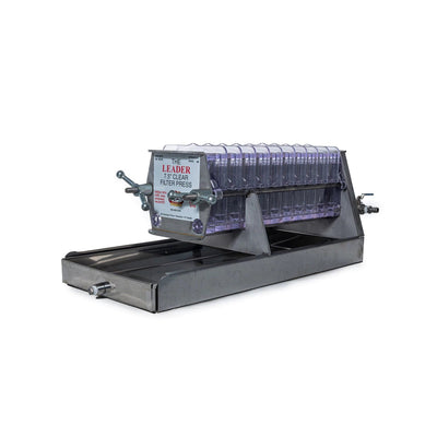 A filter press is a must-have piece of equipment for sugar makers who pack in glass. Other methods simply don't filter as clearly. See the syrup going through your press and know when the frames are filling, needing to be changed.