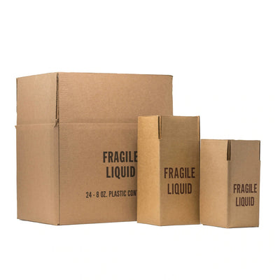 Two of the sides are printed "FRAGILE LIQUID" and also how many jugs and the size of the jug, ie "1 Gallon" or "12 Pints". Cartons are available in single cartons and multipacks. The cartons also work very well for keeping packaged jugs organized.